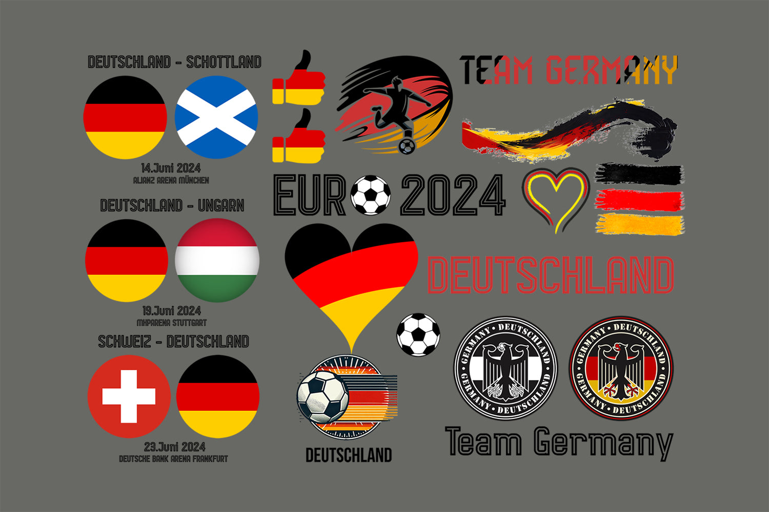 Exklusive Designs: Wähle aus unseren speziellen EM 2024 Designs und Grafiken.